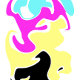 abstract shapes plus curved arrow of same four colors white background. modern trendy colors. the curved arrow is 180 degrees back to you. it is also same colors as abstract, so white will blend with background.
