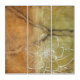 The background of this Jennifer Goldberger painting looks like a table with a forked crack in it. There is also an abstract silhouette of a flower done in white paint, just barely overriding the brown background.