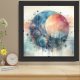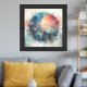 Accent the decor of your modern home or office with this unique abstract digital artwork. This poster features a captivating digital watercolor illustration of the solar system, including the moon and planets. While shown with a frame for a complete look, you have the option to purchase the poster only. This AI-generated artwork is designed by Susng6.