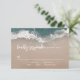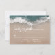 Romantic coastal themed wedding rsvp card features beautiful moody abstract watercolor sparkling ocean wave and beach background, toped with stylish script and elegant font event details, modern and simple, great for sand beach wedding, tropical destination wedding, coastal ocean themed wedding.