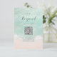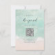 Romantic coastal themed wedding QR code rsvp card features beautiful turquoise abstract watercolor sparkling ocean wave and beach background, toped with stylish script and elegant font event details, modern and simple, great for sand beach wedding, tropical destination wedding, coastal ocean themed wedding.