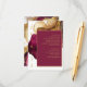 This elegant ensemble in stunning wine-red tones sets a refined tone for your wedding, tantalizing your guests with a glimpse of the opulent celebration that awaits. Enhanced further with the lavish sparkle of gold glitter accents, the wedding details enclosure card shown here provides a template to easily add pertinent information for your guests, your initials, wedding date and event details. Search ID1018 to see other pieces in this coordinated wedding set.