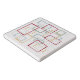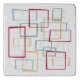 This funky mid-century modern trivet features dark red, light blue, soft green, and yellow abstract squares and rectangles. It's highlighted by thin black abstract squares and rectangles. Add a pop of retro fun to your counter!