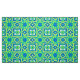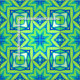 Fabric in a geometric abstract star pattern In shades of lime green, cerulean blue and turquoise, accented with deep blue