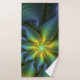 Abstract Star, Shiny Blue Green Golden Fractal Art Bath Towel