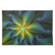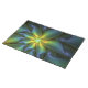 Abstract Star, Shiny Blue Green Golden Fractal Art Cloth Placemat
