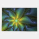 Abstract Star, Shiny Blue Green Golden Fractal Art Doormat