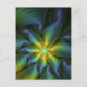 Abstract Star, Shiny Blue Green Golden Fractal Art Postcard