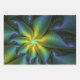 Abstract Star, Shiny Blue Green Golden Fractal Art Wrapping Paper Sheets