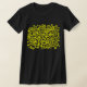 A T-shirt with an quirky hand drawn abstract surreal design, a network of shapes link together with wire like shapes which looks both natural and machine like.