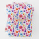 There are three similar bright abstract flower patterns in pink, blue, orange, red, purple, and yellow on these gift wrap sheets. Each pattern is also available separately. Image generated with AI by IveyCottage.