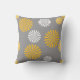 Abstract, stylized dandelions, grey, yellow, white outdoor pillow