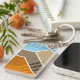 This trendy acrylic keychain features an abstract image of a subduction zone, the type of tectonic plate interaction where one plate descends below another due to their convergent motion, resulting in an arc of volcanoes on the overriding plate.