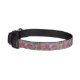 Good quality and fit is perfect for our Treeing Walker Coonhound/Beagle mix - about 45lbs and 15” neck. I wish it was pink all around (why I took off 1 star) but goid quality, printing! See above description - I added the flower to her collar in the photos