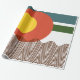 This wrapping paper has a mid-century modern design of horizontal wavy lines with two circles and two horizontal broad stripes. Want different colors? Message me.
