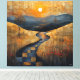 Abstract Sunset Landscape with River and Golden Canvas Print