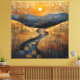 Bring warmth to your space with this stunning abstract sunset landscape. Featuring a glowing sun over rolling golden fields and a winding river with bold geometric patterns, this artwork combines vibrant tones of gold, blue, and orange to create a harmonious composition. Perfect for contemporary, minimalist, or nature-inspired interiors, this piece adds depth, warmth, and sophistication, making it a captivating centerpiece for art enthusiasts.