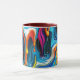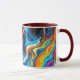 This is a Habatour Creations coffee mug, embellished with an authentic modern abstract digital multicolor surface artwork, inspired by fluid art