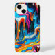 This is a Habatour Creations iphone case, embellished with an authentic modern abstract digital multicolor surface artwork, inspired by fluid art