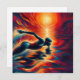 Abstract Swimmer Art Pillow, Swimming Gift, Decor Holiday Card