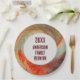 Create personalized paper plates for your next family gathering. These plates features a groovy retro pattern of orange and brown. Quickly and easily customize all text for your special event.