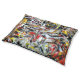 My dog instantly fell in love with this bed. It's super soft and plush. She hasn't stopped laying on it and even when I move it, she jumps on it and gets moved with it. The removable cover is easy to take off and wash. Highly recommend this and it makes a great gift. Fanstastic printing. The colors are 100% accurate and bold.