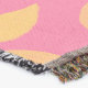 A quality printed throw has its advantages. This is a much finer weave throw than its loopier cousins, and though lighter, it is worth the investment for custom room accessorizing. The back is much prettier than the typical brown, and the fringe on the long sides very vivid, the selvage nicely done. Before photographing, I washed the throw in cold water, delicate, with a thicker woven throw the same size. On tumble dry low, this throw was dry in half the time as the other. This is a very practical quality if you use throws for furniture covers or to wrap up in frequently. The sleekness of the fabric makes it a great layer for accenting or protecting without the feeling of sitting on too much stuff. Perfect for napping or when you feel a light chill coming on. The color printing is beautiful and on this fabric, matched the design and color of my Photoshop image. This is an advantage for blending room fabrics and colors. The fringe on the short sides prints the colors from the design image and therefore varies from the side fringe. I streaked a white fractal line through the plaid pattern to give the illusion of weaving. This printed as crisp as an illusory thread, and put some white in the short side fringe, showing another advantage of print vs loomed- for artistic purposes, line lines, detail, and color integrity can be planned and preserved. My loomed throws have color limitations and more of a needlepoint texture. Print throws reproduce an exact image. The throw felt a little stiff straight out of the package, but this went away in the first delicate wash. Of course I searched the wash water for ink or bleeding and there was none.