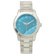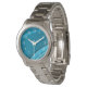 This beautiful watch with white numerals features an abstract swirly design in trendy teal shades.