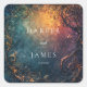 Seal your celebration with a design that is both dramatic and deeply artistic, capturing the essence of seasonal change and enduring love. This stunning wedding sticker features a rich, abstract background dominated by a moody blend of deep teal blue, sapphire, and dark navy, melting into a fiery arc of burnt orange and shimmering gold in the upper right corner. The composition is elegantly framed by twisting, stylized dark tree branches and vines, which are highlighted with flecks of faux gold dust and subtle metallic leaves, giving the piece a magical, ethereal look. This painterly abstract aesthetic is ideal for couples planning a fall or winter wedding, a bohemian forest event, or a theme centered around celestial bodies and the dramatic contrast of night and light. This lavish sticker is the perfect final flourish for envelope seals, favor boxes, table numbers, or welcome bags for any deeply romantic and uniquely artistic event. Its versatile use for other businesses, events, or situations makes it an exceptional choice for any occasion demanding an air of unmatched luxury and historical artistry.