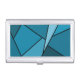 Inspired by stained glass, this stylish geometric design contains polygons in various shades of teal outlined in black. A pale blue-green triangle slashes in from the upper right with an array of progressively darker teal quadrangles and other shapes spiraling around it from light to dark. Two dark greenish-blue shapes ground the left side of the original design.