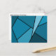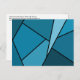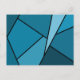 Inspired by stained glass, this stylish geometric design contains polygons in various shades of teal outlined in black. A pale blue-green triangle slashes in from the upper right with an array of progressively darker teal quadrangles and other shapes spiraling around it from light to dark. Two dark greenish-blue shapes ground the left side of the original design.