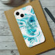 Abstract Teal Turquoise Liquid Marble Swirl Script iPhone Case
