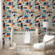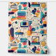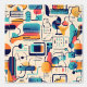 This vibrant abstract artwork combines geometric shapes and technology-inspired icons in a dynamic, retro-futuristic color scheme. The bold use of teal, orange, and navy blue creates a lively composition reminiscent of data systems, modern interfaces, and tech schematics. Perfect for adding an energetic, contemporary touch to any space, this digital design reflects the aesthetics of connectivity and innovation with a playful, artistic twist.