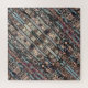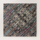 Using a muted earth tones color palette with texture, this abstract pattern incorporate chaotic shapes diagonally.