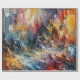 Vibrant colors blend in a dynamic abstract composition creating a sense of movement and depth