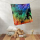 This creative abstract watercolor design features a star burst movement, texture and vibrant colors.