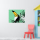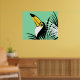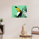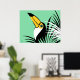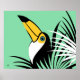 Tropical jungle wildlife art of Toco Toucan on light teal background with palm fronds