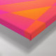 An interesting abstract composition. Geometric triangles and rectangles in colors from a cool sixties color scheme. Lime green, hot pink, royal purple, tangerine orange, and more. These shapes are tumbling around in every direction giving a sensation of motion and movement. A fun and psychedelic piece.