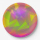 An interesting abstract composition. Geometric triangles and rectangles in colors from a cool sixties color scheme. Lime green, hot pink, royal purple, tangerine orange, and more. These shapes are tumbling around in every direction giving a sensation of motion and movement. A fun and psychedelic piece.