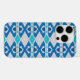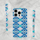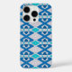 Original abstract tribal pattern; in shades of light and dark blue and turquoise. Unique pattern, giving a tribal vibe design. Case-Mate iPhone Case, available for multiple device models, including iPhone 16 Pro.