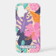 Embrace the vibrant hues of paradise with this Tropical Floral phone case. This lively design features a lush arrangement of tropical flowers and foliage in a captivating blend of pink, purple, and orange tones. Personalize it with your name for a touch of individual style. Perfect for those who appreciate bold patterns, exotic blooms, and a touch of personalized flair.