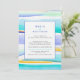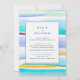 Abstract tropical tide lines blue yellow wedding invitation