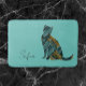 Abstract turquoise and gold pattern on this gorgeous cat lover bath mat.