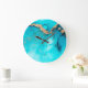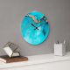 Abstract Teal Mediterranean Turquoise Gold Luxury Clock. Enticing Medditerranean colours and organic marine shapes. Fluid alcohol ink original art work.