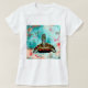 A hand drawn depiction of a turtle with an abstract background. Colors used: red, blue, teal, green, yellow, purple.