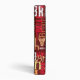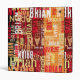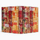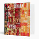 The dark-red and orange solid background forms the perfect canvas for the typography-inspired patterns. This rich backdrop enhances the contrast of the distressed fonts, creating a visually striking and balanced composition.