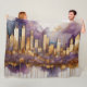 Abstract Watercolor Painting Gold Cityscape Purple Fleece Blanket