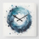 abstract ring in watercolor style, wheel spot, dark blue and teal color tones, wall clock, free hand pattern,