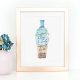 Beautiful personalized message in a bottle wall art print. The design features a vintage-style bottle created with abstract watercolor brush strokes in beautiful ocean sea blue colors and sandy sand tones. The bottle can be customized with your own personalized message to a loved one, a special quote with sentimental meaning, a wedding vow, a love note, etc. Modern and beautiful wall art piece to display in your home. Artwork and design by Moodthology Papery.