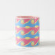 Modern mug with yellow, pink and light blue abstract waves. Life happens in waves! Enjoy it!